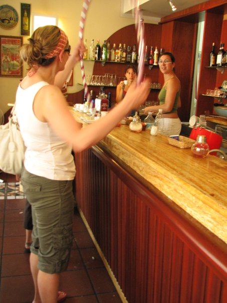 Mattea is one of my absolute favorite people on the planet. She loves to joke and play games, and is a badass to boot. She and her husband owned a bar that was the central haunt for our festival participants, and we kept our call board there. It was pretty much an extension of my office and EVERYONE loved her and her hubs Marco. One morning, I’m standing there having my cappuccino and I see her punch someone. I asked her what the hell she was doing, and she explained the circle game to me. If you get someone to look at a circle, you get to punch them. She then proceeded to get me to look at a circle and punched me really hard in the arm (don’t be mad at her; she knows not her strength). After that I decided I was gonna get her. I was gonna get her GOOD.